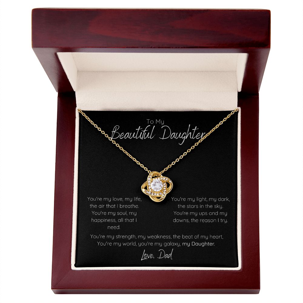Imagine her reaction receiving this beautiful Love Knot Necklace. Representing an unbreakable bond between two souls, this piece features a beautiful pendant embellished with premium cubic zirconia crystals. Surprise your loved one with this gorgeous gift today!