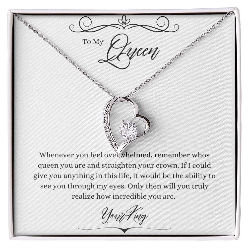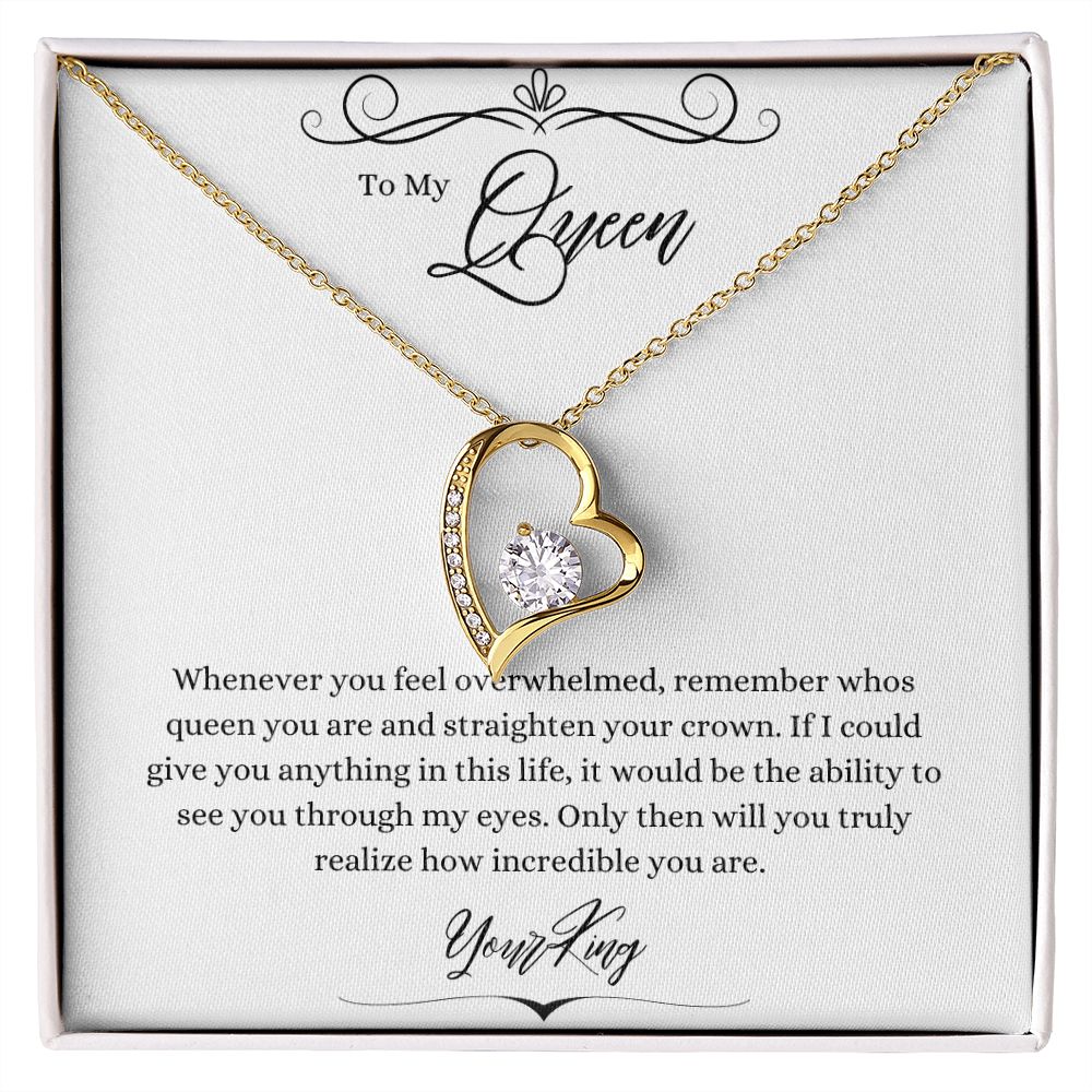 Whenever you feel overwhelmed, remember whos queen you are and straighten your crown. If I could give you anything in this life, it would be the ability to see you through my eyes. Only then will you truly realize how incredible you are.