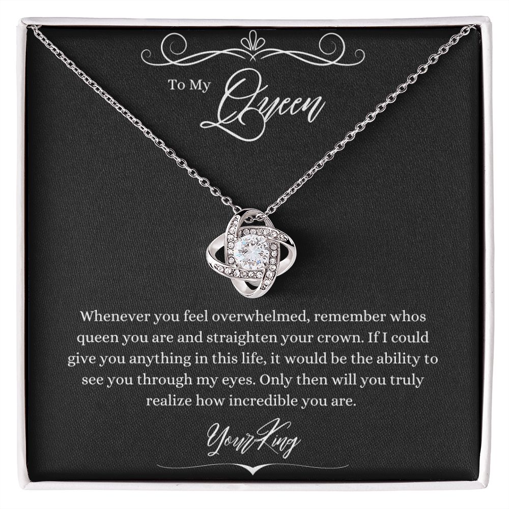Whenever you feel overwhelmed, remember whos queen you are and straighten your crown. If I could give you anything in this life, it would be the ability to see you through my eyes. Only then will you truly realize how incredible you are.